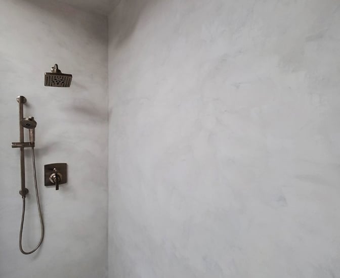 MicroMarmo is an extremely durable, mineral-based finish suitable for both horizontal and vertical surfaces, including floors, walls, and wet areas like showers. Made from natural components and marble inerts, it is 100% eco-friendly. When properly sealed, MicroMarmo provides a seamless and waterproof surface.